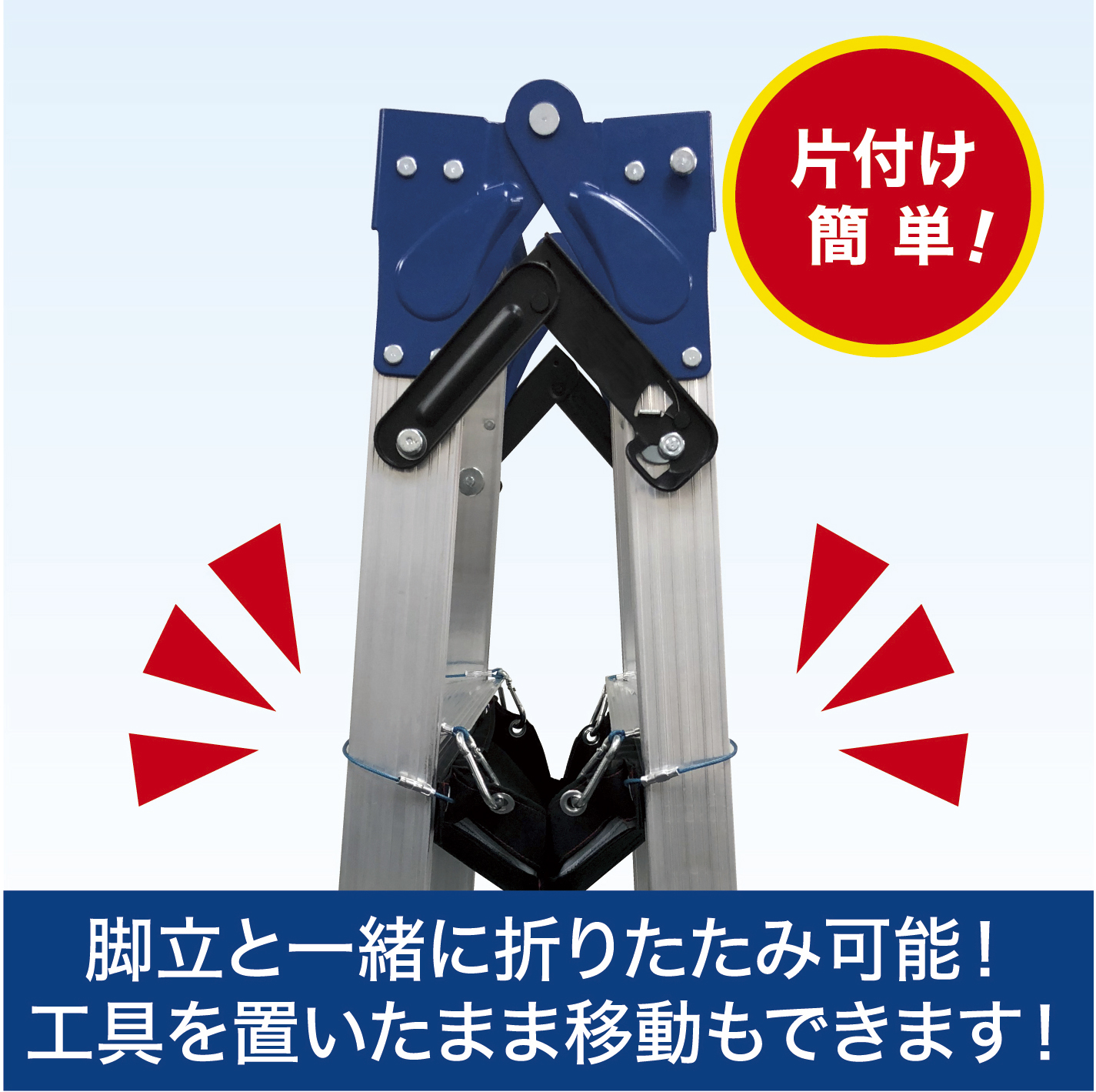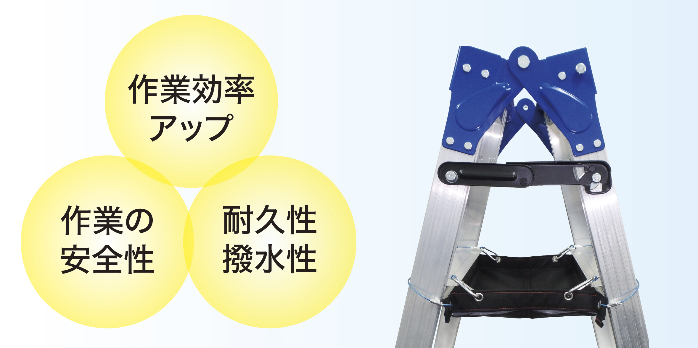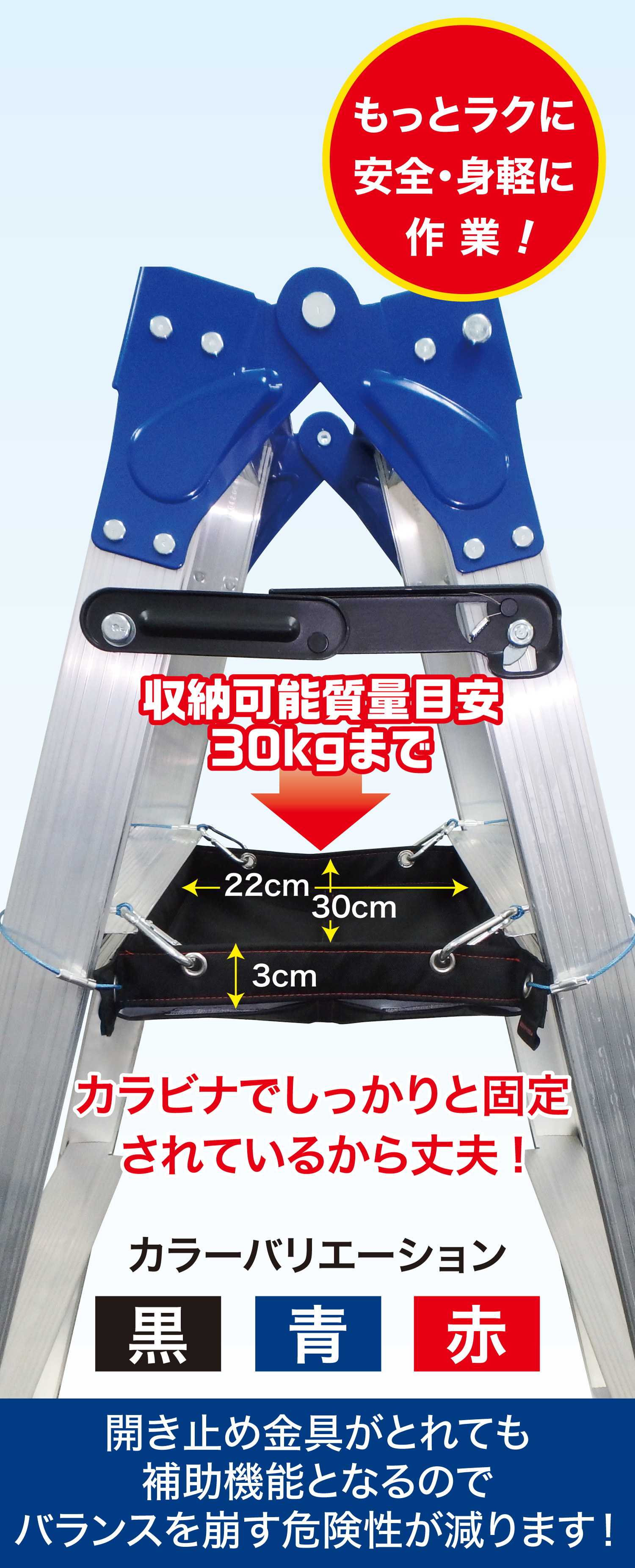 脚立を使い作業することが多い中、「ちょっとした棚があれば便利なのに」「工具を入れるなら重さに強いもの、ビスや釘等も固定できたら」など作業中のちょっとしたやりづらさを解決したいという思いから出来ました。 また障がい者就労支援事業として、福岡県北九州市の就労継続支援B型事業所「ファクトリーann」様にご協力いただいております。ご使用には影響ありませんが、形体及び縫い目等多少の誤差があります。ご理解の程よろしくお願いいたします。