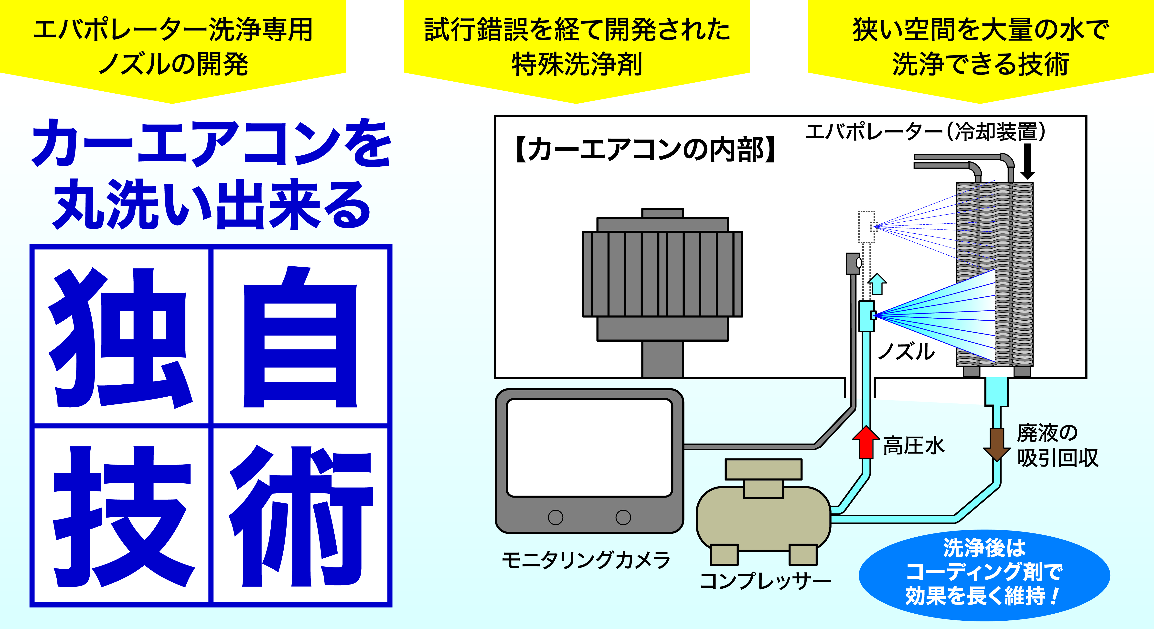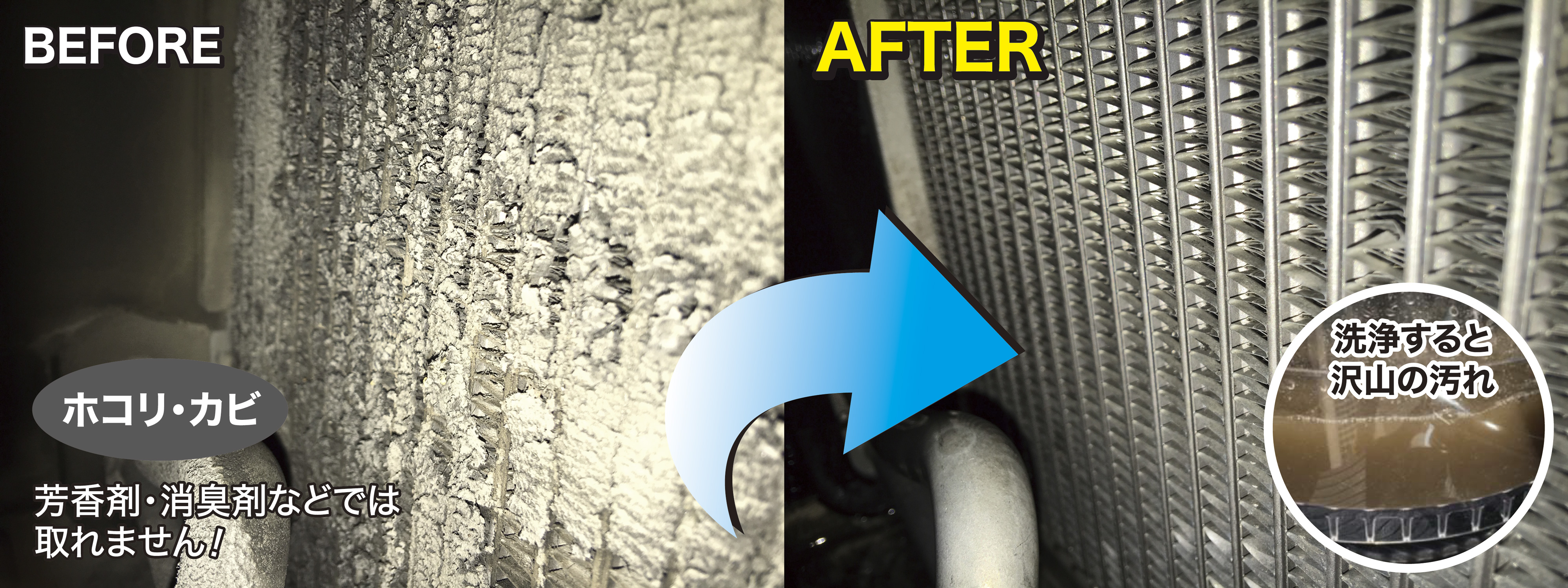 エアコンの付け始めのあの嫌なニオイ。感じられたことのある方も決して少なくはないはずです。外気を直接取り入れるカーエアコンは、ルームエアコンの約3倍ものカビが吹き出しています。ドライブ中にずっと吹き出しているカビは、喘息やアレルギー性鼻炎などを悪化させる原因物質です。